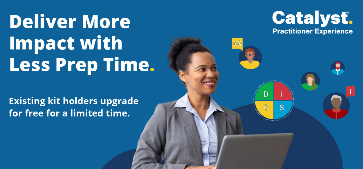 Do you own an Everything DiSC on Catalyst, Workplace, Agile EQ, or Management Facilitation Kit? Simply login to your Admin Account (we can work with you to create one if you haven’t set your up, yet) and upgrade for FREE before April 30, 2026. Simply enter your existing kit serial number into the Catalyst Practitioner Experience tab within Catalyst to gain access and unlock your Catalyst Practitioner Experience. This no-risk offer provides you the opportunity to try out the innovative Catalyst Practitioner Experience at no cost.